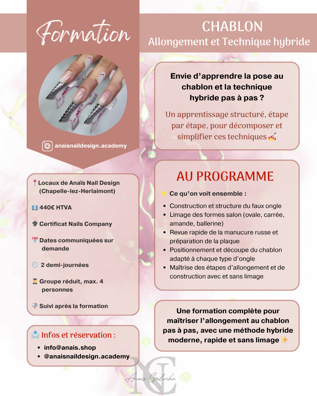 📬 Si tu as des questions ou que tu veux connaître les dates de la prochaine session, écris-moi à info@anais.shop. Si tu préfères, envoie-moi simplement un petit DM sur Instagram @anaisnaildesign.academy, je te répondrai avec plaisir.